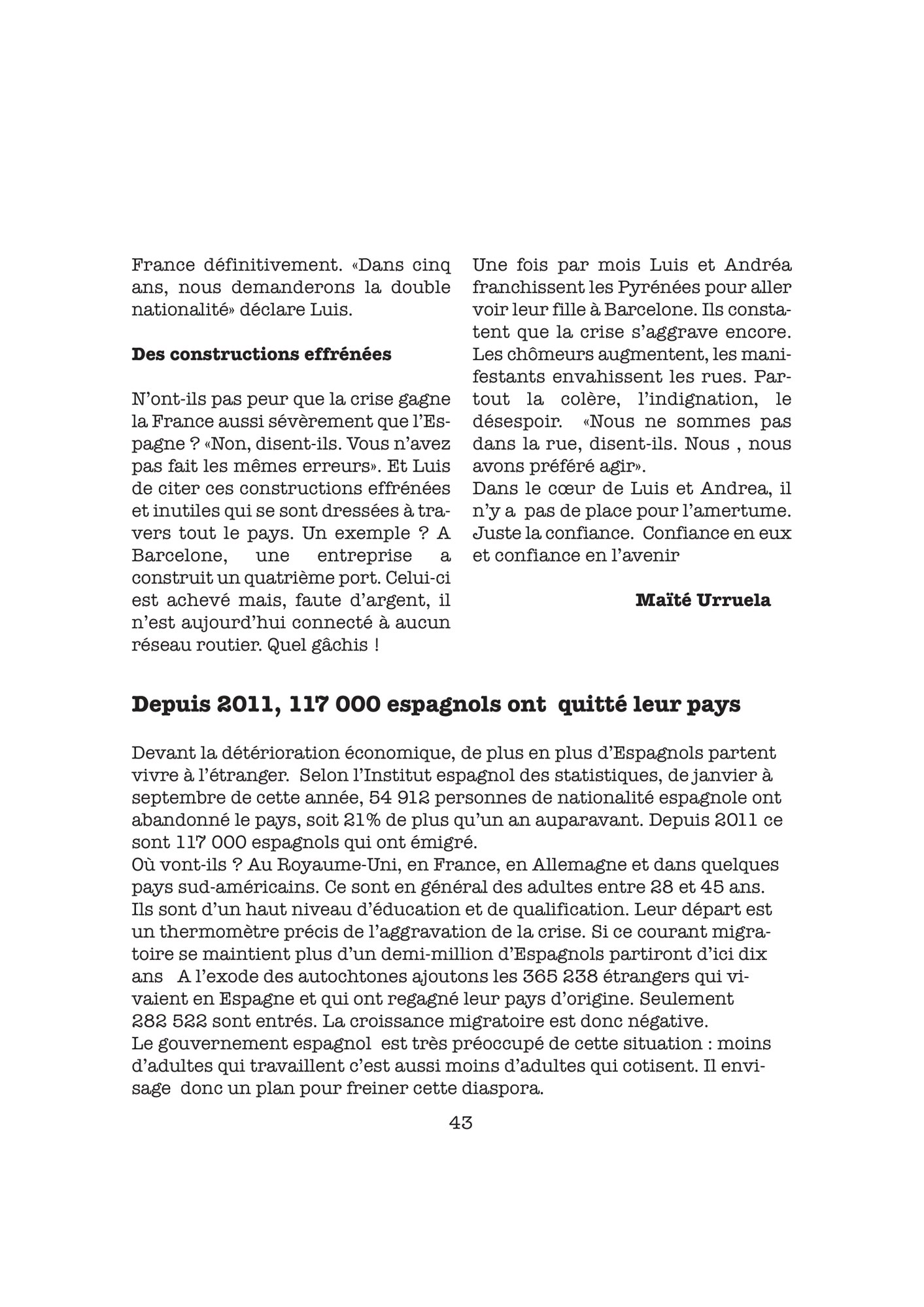 Cent articles n’y changeraient rien. Mais ce qu’il convient de tenter, c’est d’aider les femmes, celles que la « chose publique » effraie, à prendre conscience que ni le ravaudage des chaussettes ni les collections de couturiers, ni même le soin des enfants ne suffiront plus à remplir leur vie tout à fait, car un peuple entier a désormais besoin de leur bonne volonté, de leur ingéniosité, de leur intelligence des problèmes quotidiens, de ce que nous assimilions jadis aux « Ouvrages de Dames » : leur sensibilité.