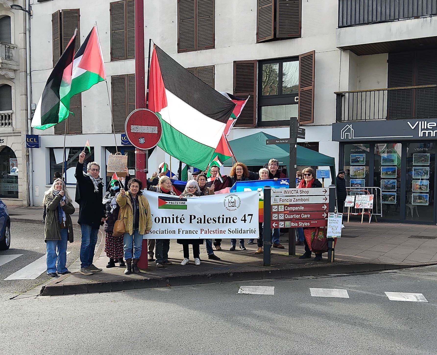 La Fraternité. C’est le nom hautement symbolique de la rue où se réunit chaque samedi le collectif Palestine 47 de Villeneuve-sur-Lot. Depuis l’attaque de Gaza par l’armée israélienne consécutive à celle commise le 7 octobre 2023 par les terroristes du Hamas,une vingtaine de militants manifestent leur soutien aux rescapés du territoire gazaoui ravagé.